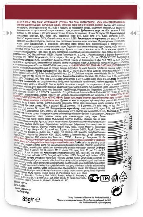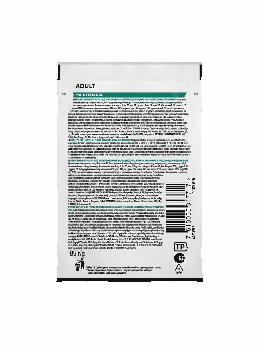 Pro Plan Cat Adult 85г Пауч Влажный корм для взрослых кошек Ягненок вкусные кусочки в желе 85г. Цена за упаковку,в упаковке 12шт(12штх85г)
