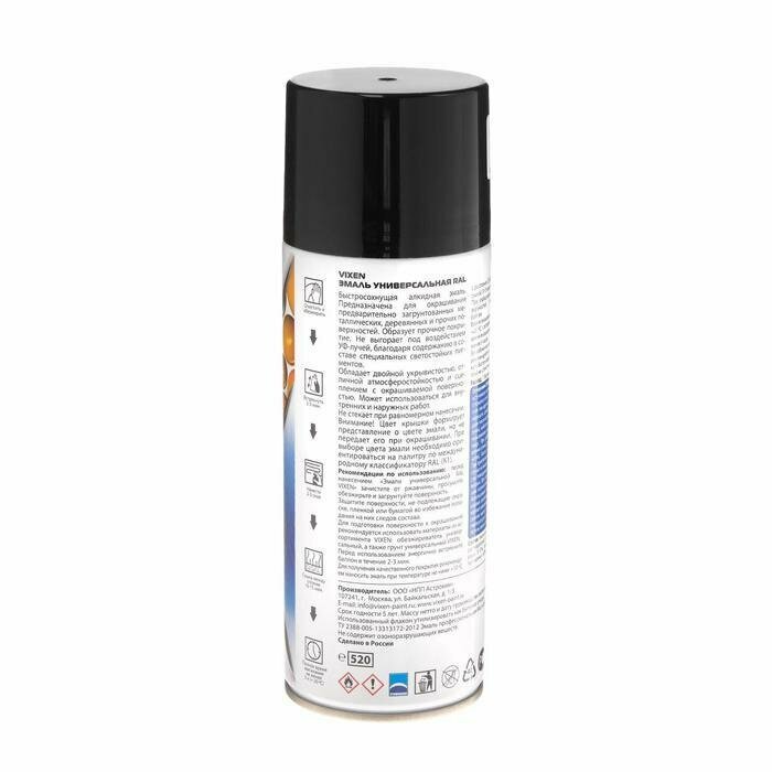 VIXEN VX19005 Эмаль универсальная RAL, черный (RAL 9005), аэрозоль 520 мл VIXEN VX19005