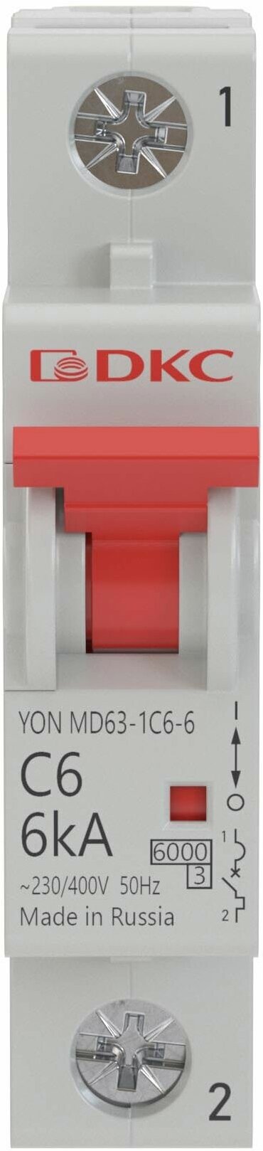 Выключатель автоматический модульный DKC 1п C 6А 6кА YON Md63, MD63-1C6-6 .