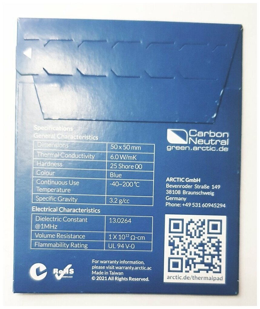 Купить Термопрокладка Arctic 50x50x0.5mm Thermal pad 6.0 WMK ACTPD00001A