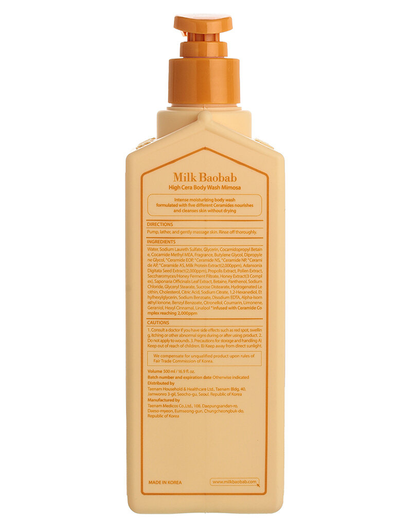 Купить Гель для душа с мимозой 500 мл, HIGH CERA BODY WASH MIMOSA, Milk Baobab, 8802667005204
