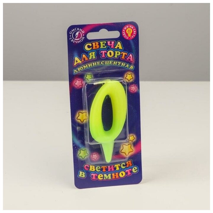 Омский свечной завод Свеча для торта цифра "Люминесцентная", 7.8 см, цифра "0"