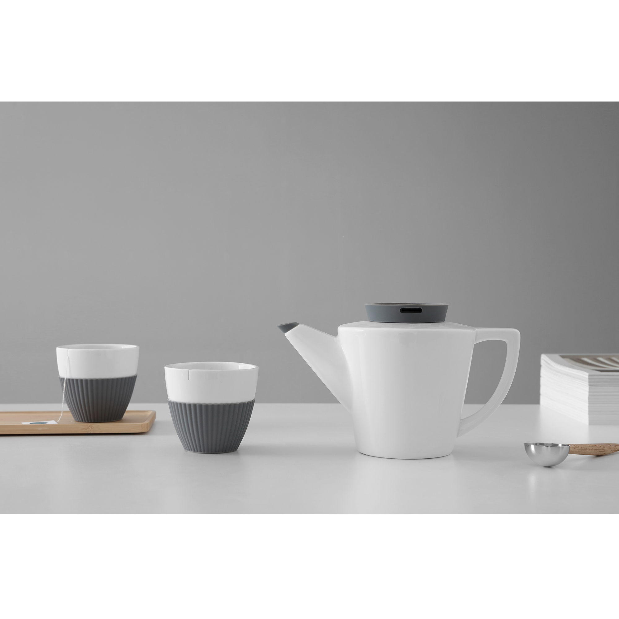 Набор чайный 3 предмета, на 2 персоны, фарфор, силикон, нержавеющая сталь, белый, серый V24133 Infusion