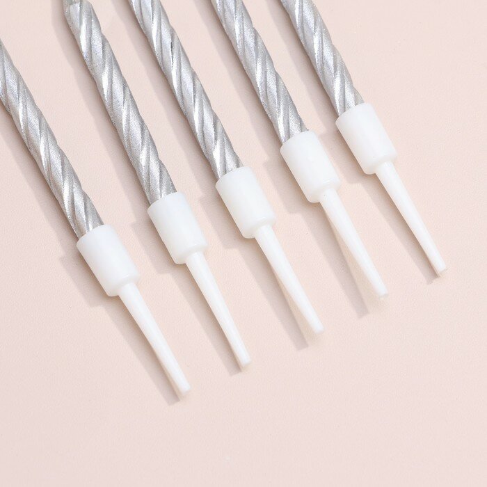 Свечи серебряные для торта, 10 шт, 7 см, с держателями