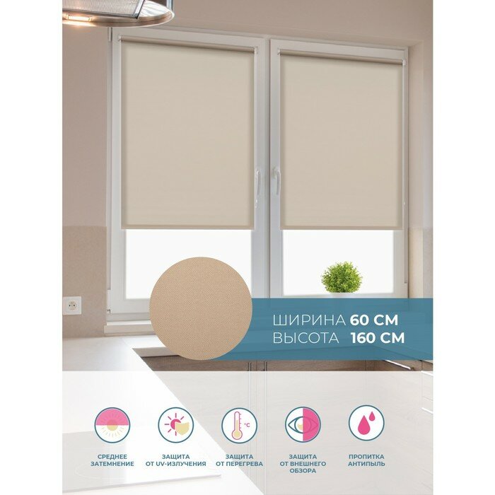 Рулонные шторы однотонные 60 см х 160 см Кремово-бежевый Плайн DECOFEST (Мини)