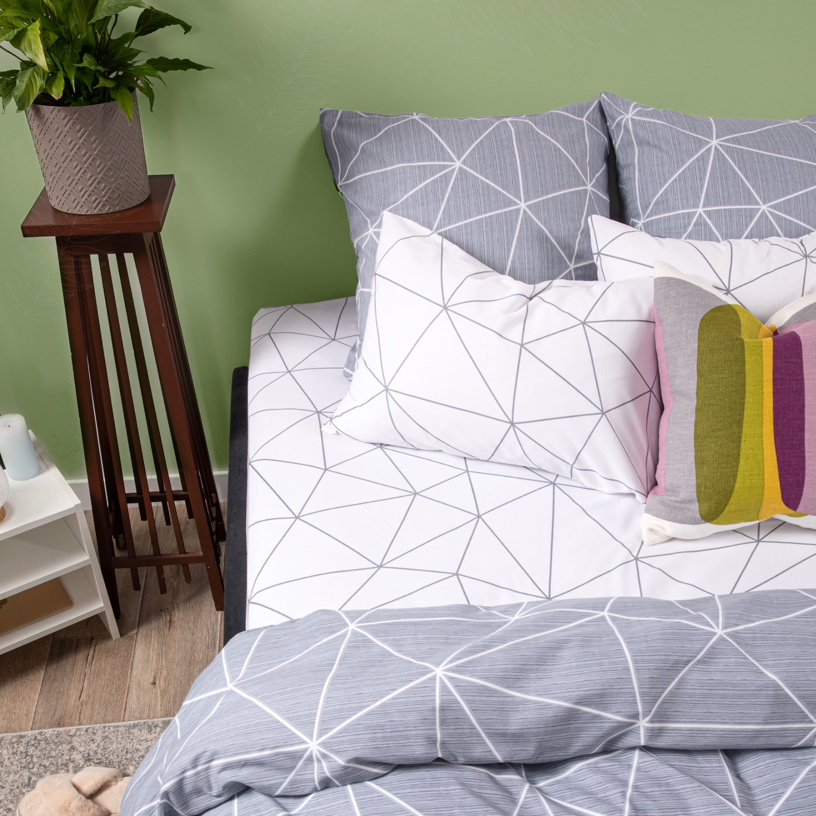 | Плюсы: | Очень нравится дизайн - простой и минималистичный. Ткань на ощупь приятная, сплю хорошо. |
