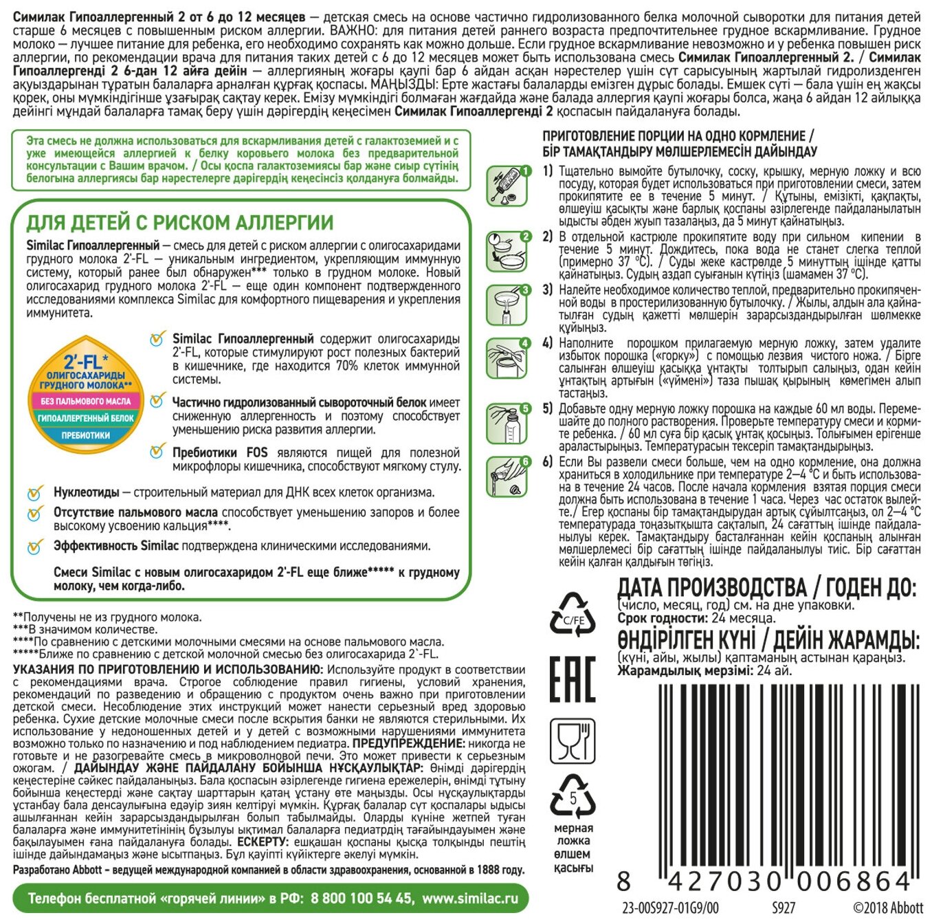Смесь молочная SIMILAC Гипоаллергенный 2, с 6 месяцев, 750г
