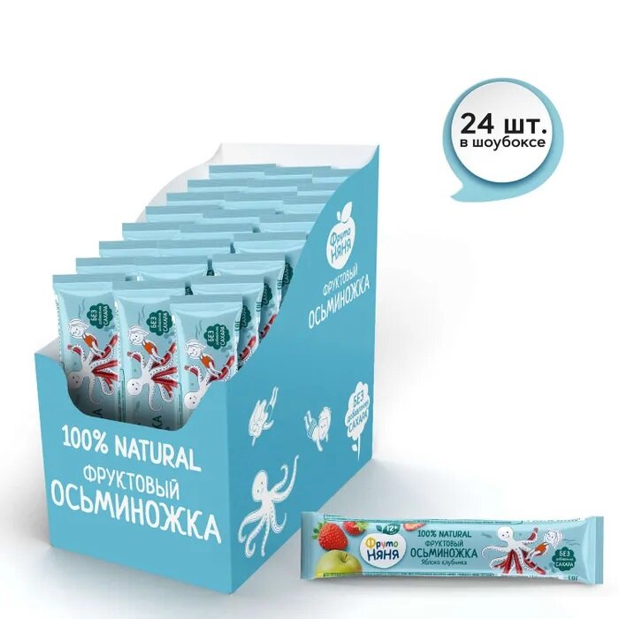 Снэк ФрутоНяня Фруктовый осьминожка яблоко-клубника, 16 г, 24 уп. интересное: