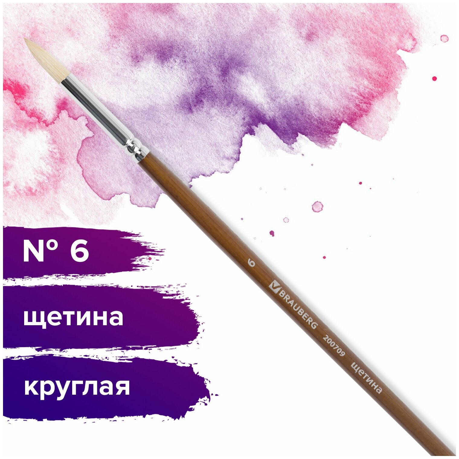 СохранитьКисть художественная профессиональная BRAUBERG ART CLASSIC, щетина, круглая, № 6, длинная ручка, 200709 Комплект : 5 шт. интересное: