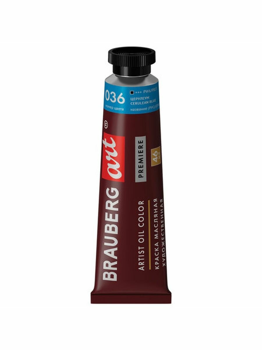 Краска масляная художественная BRAUBERG ART PREMIERE, 46 мл, проф. серия, церулеум, 191420