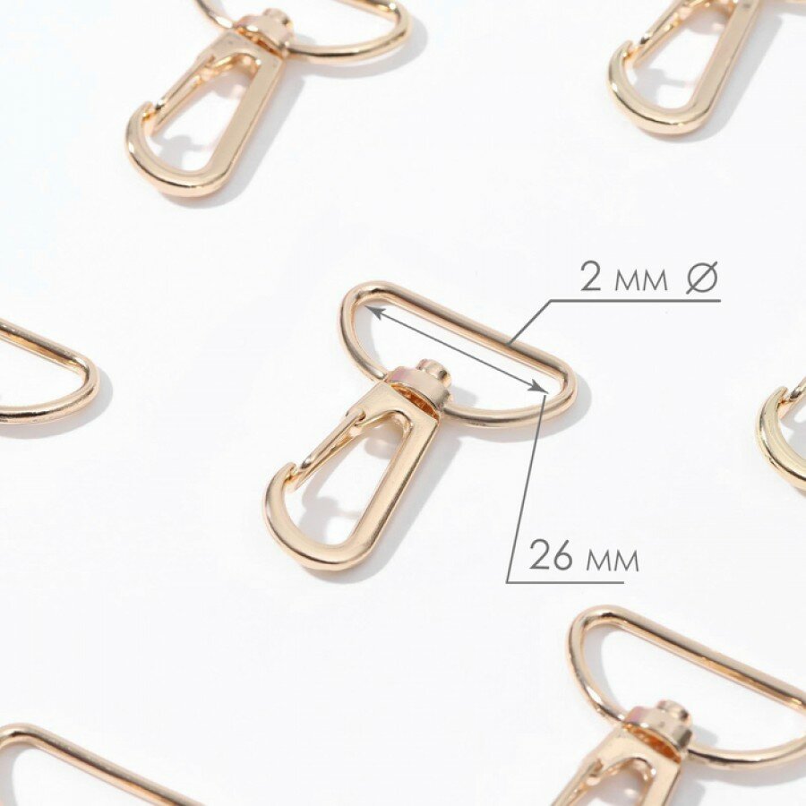 Карабин металлический, 39 × 30 мм / 26 × 2 мм, 10 шт, цвет золотой (арт. 3780086)