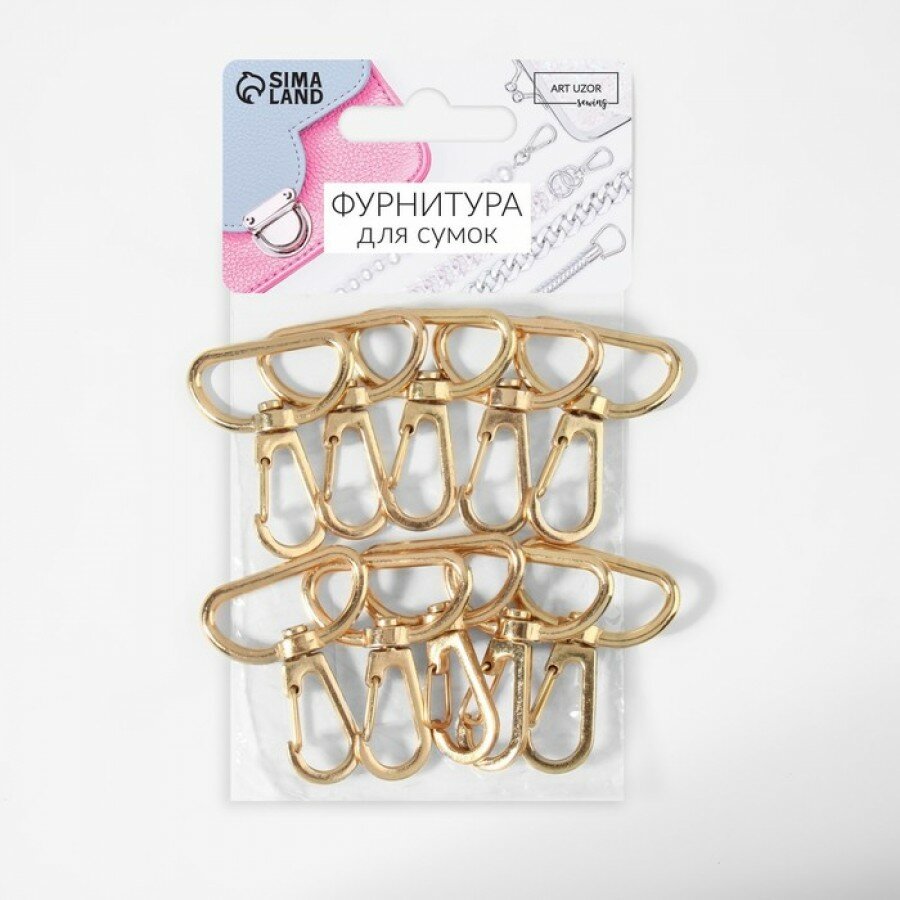 Карабины металлические Арт Узор 3,9*3,1см/25*2,2 мм, 10 штук, цвет золотой (3780086)