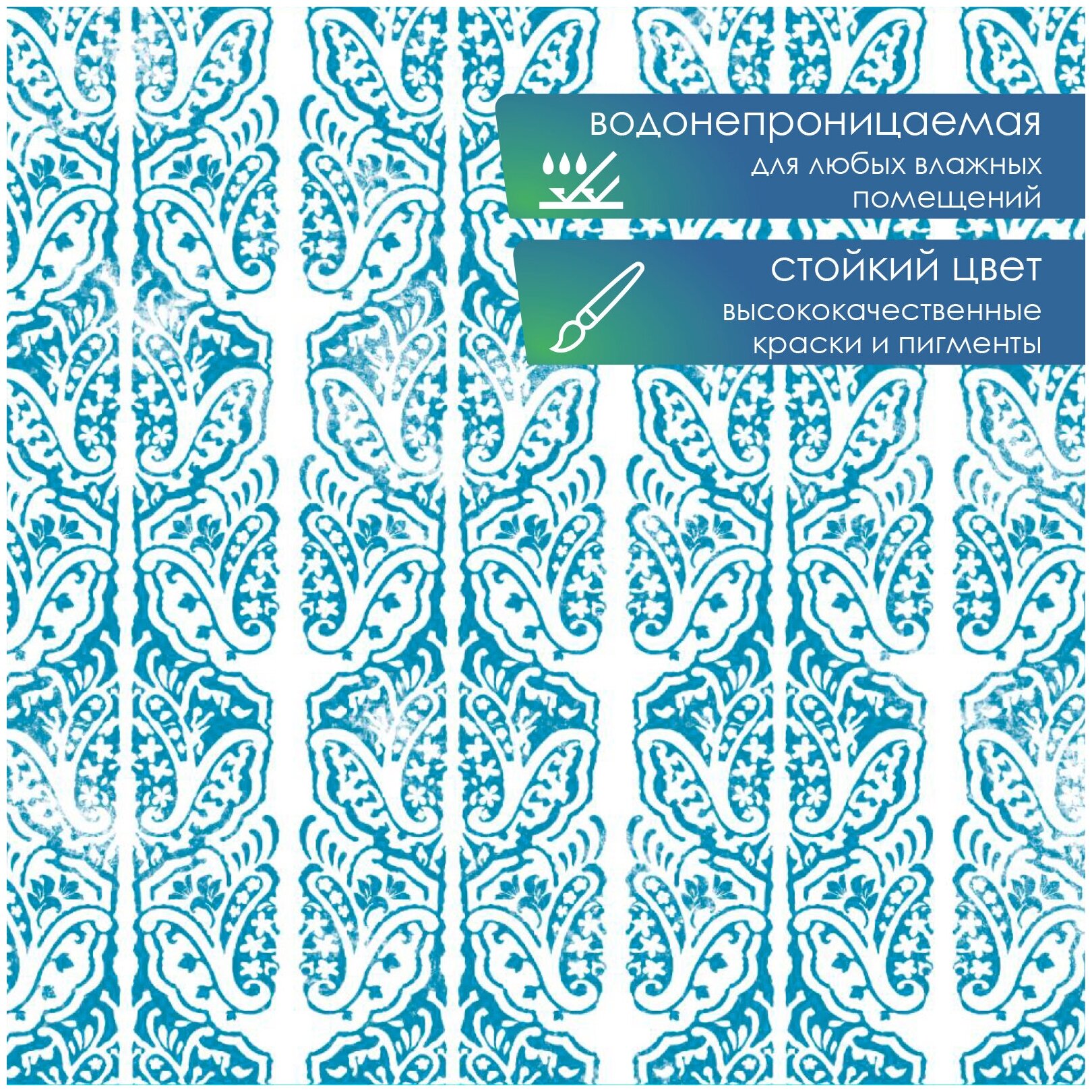 Штора для ванной комнаты VILINA водонепроницаемая с рисунком занавес с кольцами 180х180 см Барокко голубая