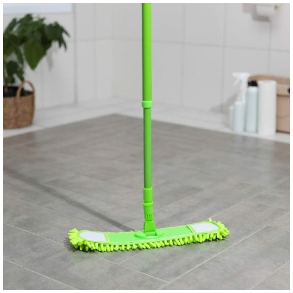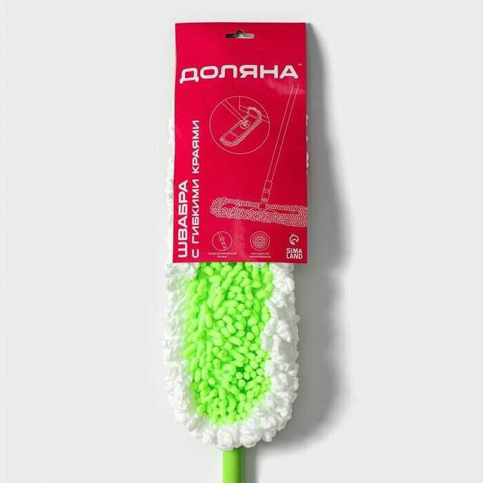 Швабра для мытья пола плоская Доляна, насадка из микрофибры, гибкие края, телескопическая ручка 80-120 см