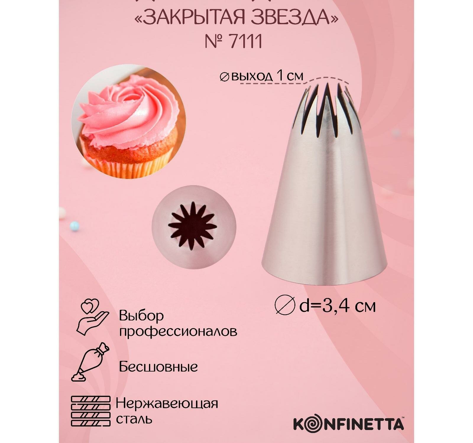 KONFINETTA Насадка кондитерская «Закрытая звезда», d=3 см, выход 1 см, нержавеющая сталь
