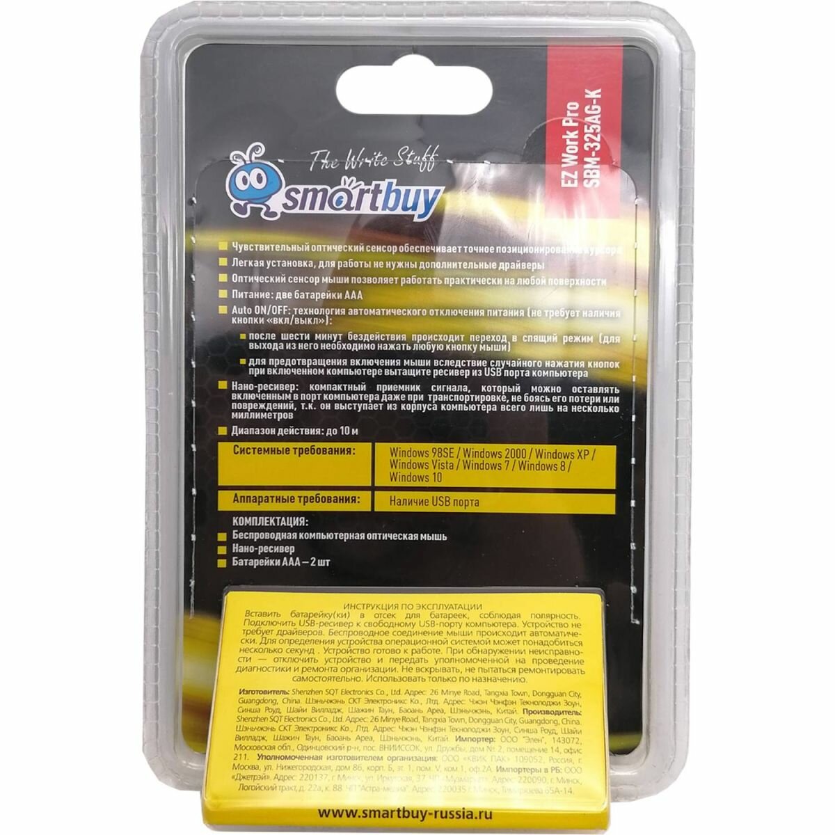SmartBuy EZ Work Pro Wireless Optical Mouse (sbm-325ag-k) (rtl) USB 3btn+Roll, беспроводная .