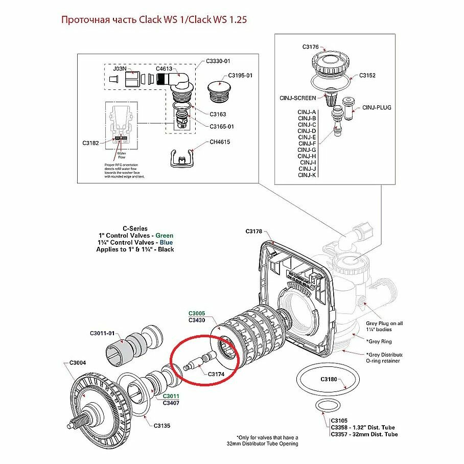 Поршень регенерации WS1 Clack Corp V3174 интересное:
