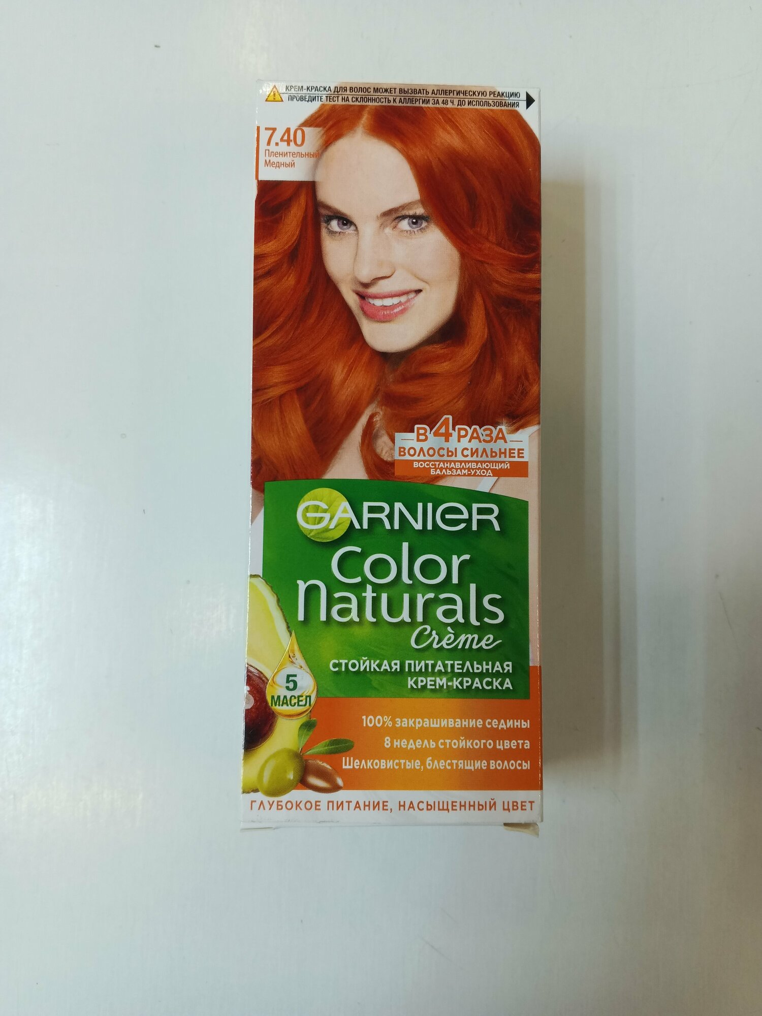 Крем-краска для волос Garnier Color Naturals с 3 маслами, тон 7.40, Пленительный медный