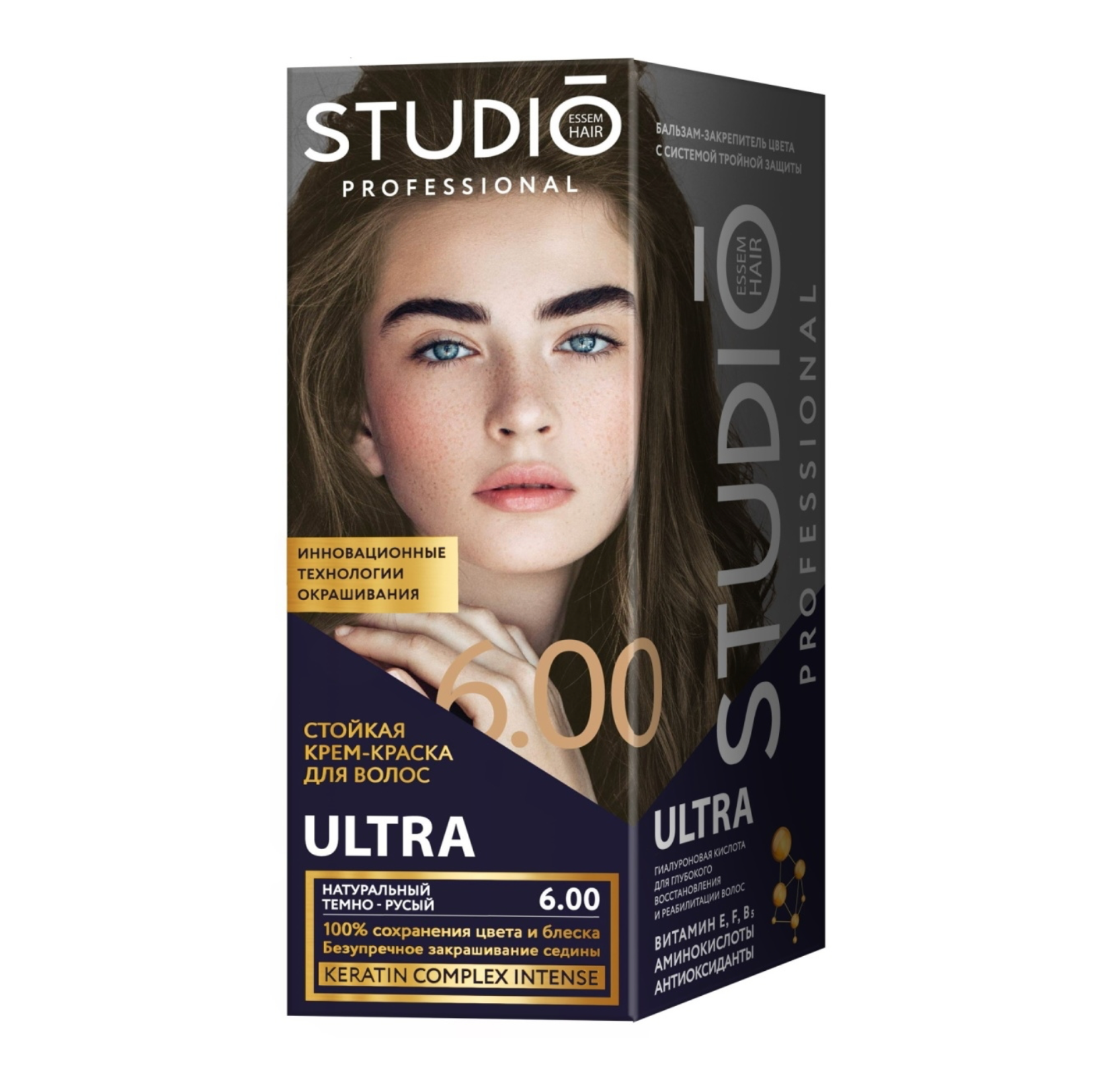 Стойкая крем-краска для седых волос STUDIO PROFESSIONAL ULTRA тон 6.00 Натуральный темно-русый