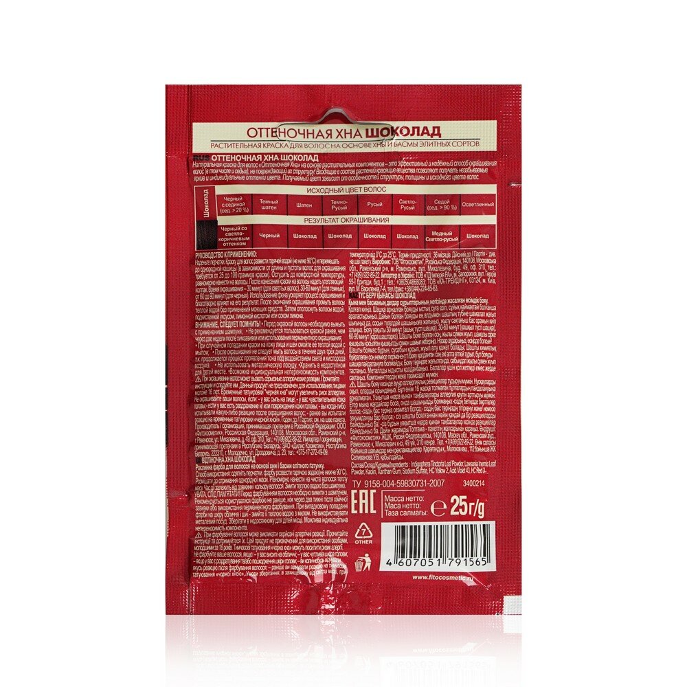 Хна оттеночная "Шоколад", саше фитокосметик 25 г
