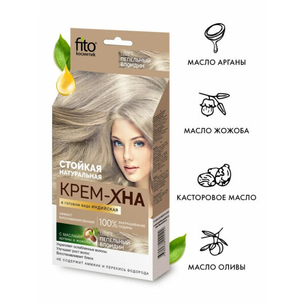 Купить Fito Косметик Крем-Хна Индийская в готовом виде Fito Косметик Пепельный блондин 50 мл