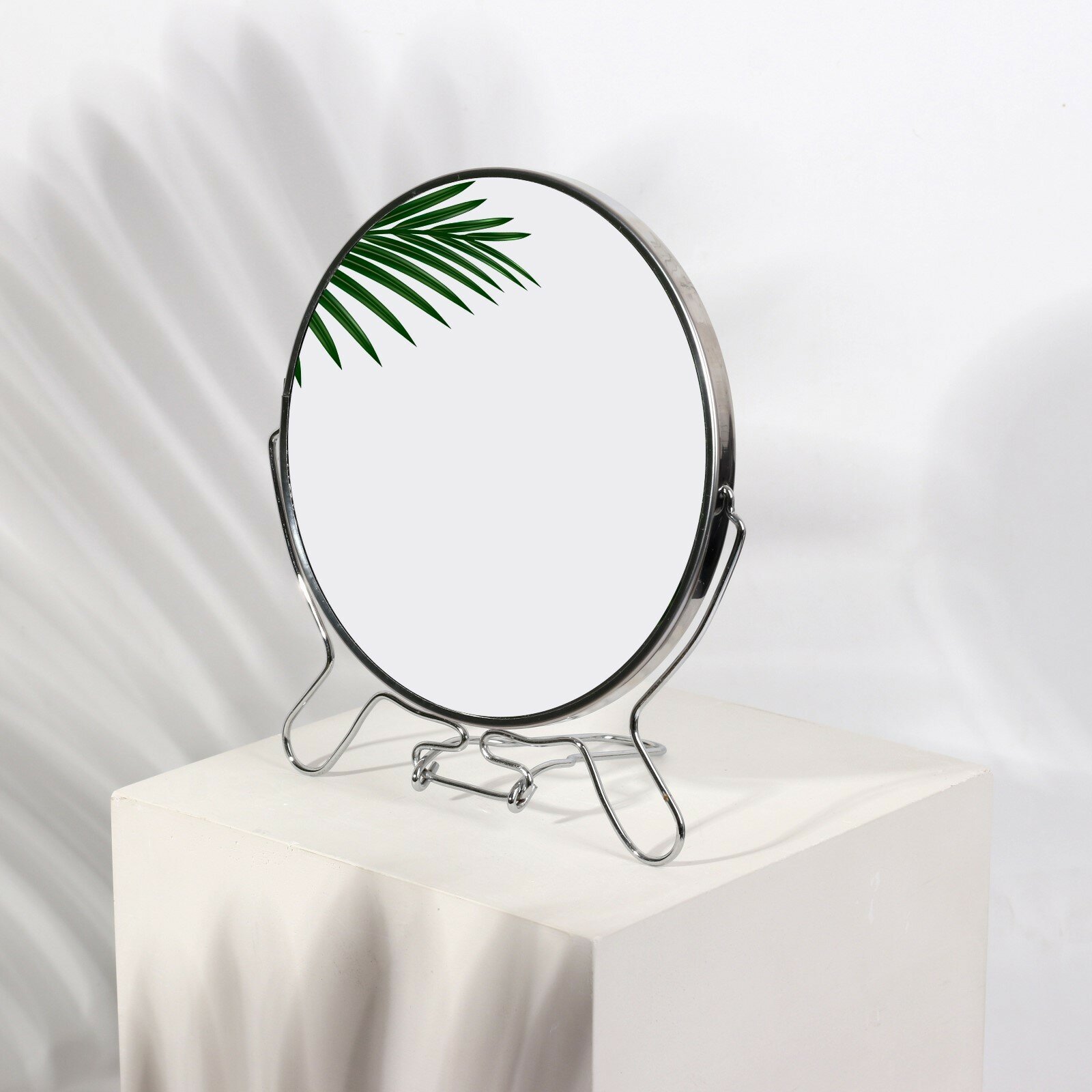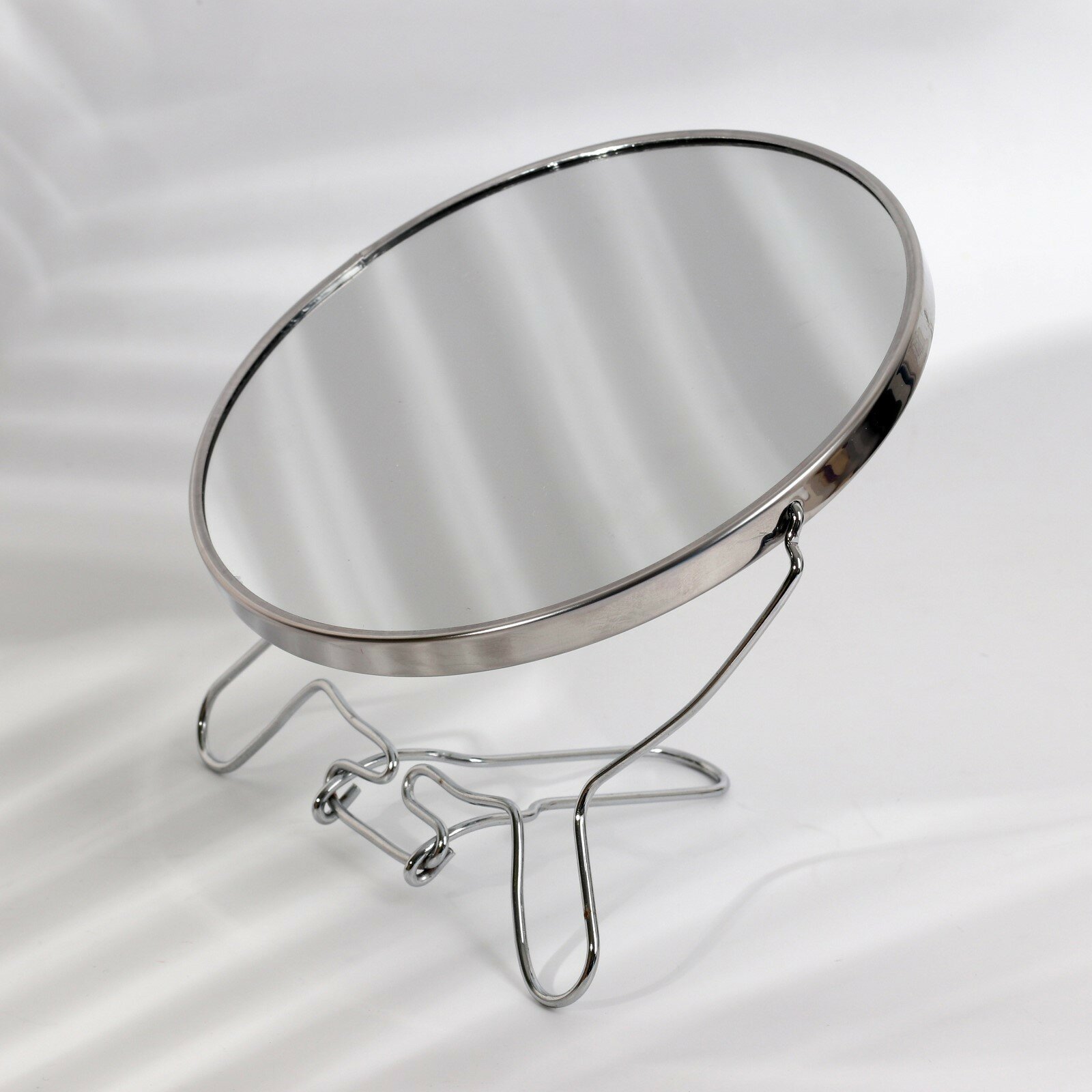 Зеркало настольное круглое железное двустороннее разного увеличения 16 см