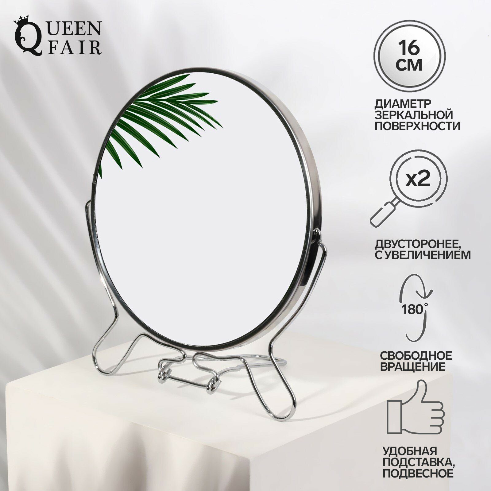 СохранитьQueen fair Зеркало настольное - подвесное «Круг», двустороннее, с увеличением, d зеркальной поверхности 16 см, цвет серебристый интересное: