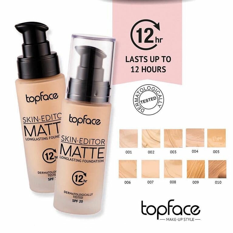ТопФейс Тональный крем для лица Skin Editor Matte Foundation SPF20 для любого типа кожи кремовый, тон 002 светло-бежевый 32мл / декоративная