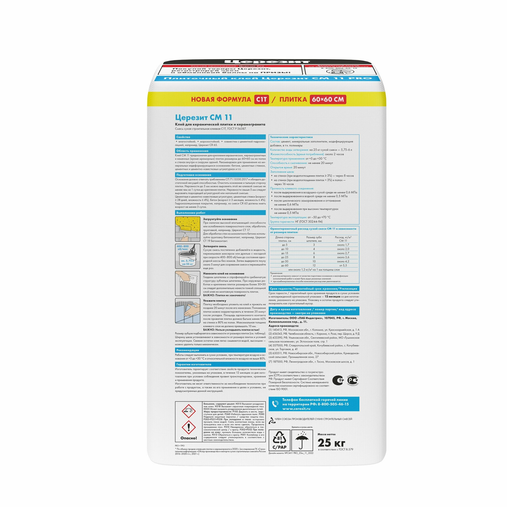 Церезит СМ-11 Про клей плиточный (25кг) / CERESIT CM-11 Pro клей для плитки и камня для пола и стен (25кг)