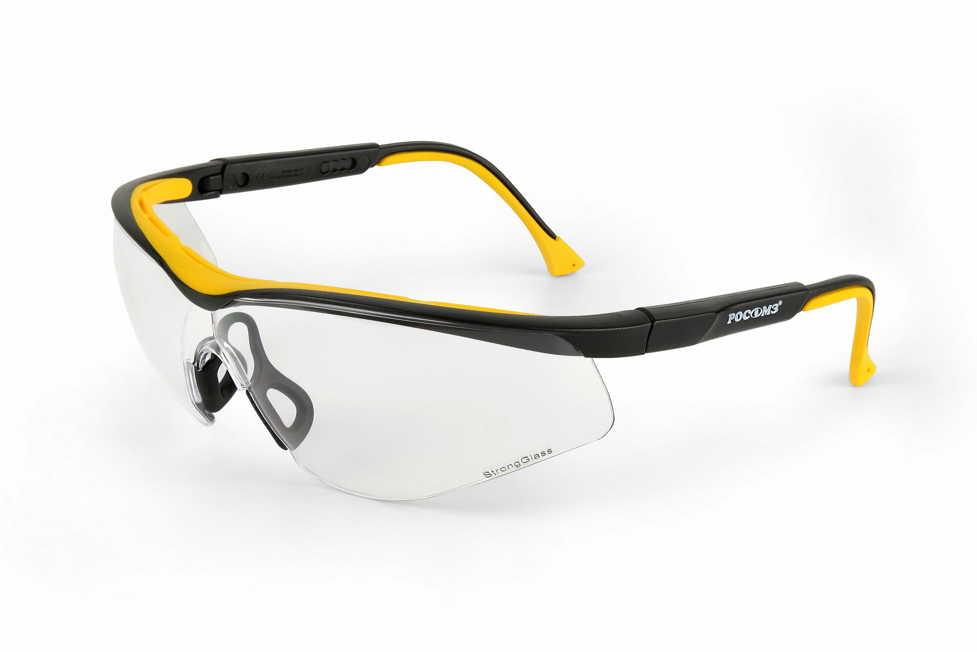 Очки защитные открытые РОСОМЗ О50 Monaco StrongGlass, прозрачные, регулируемые дужки, незапотевающее покрытие, 15037