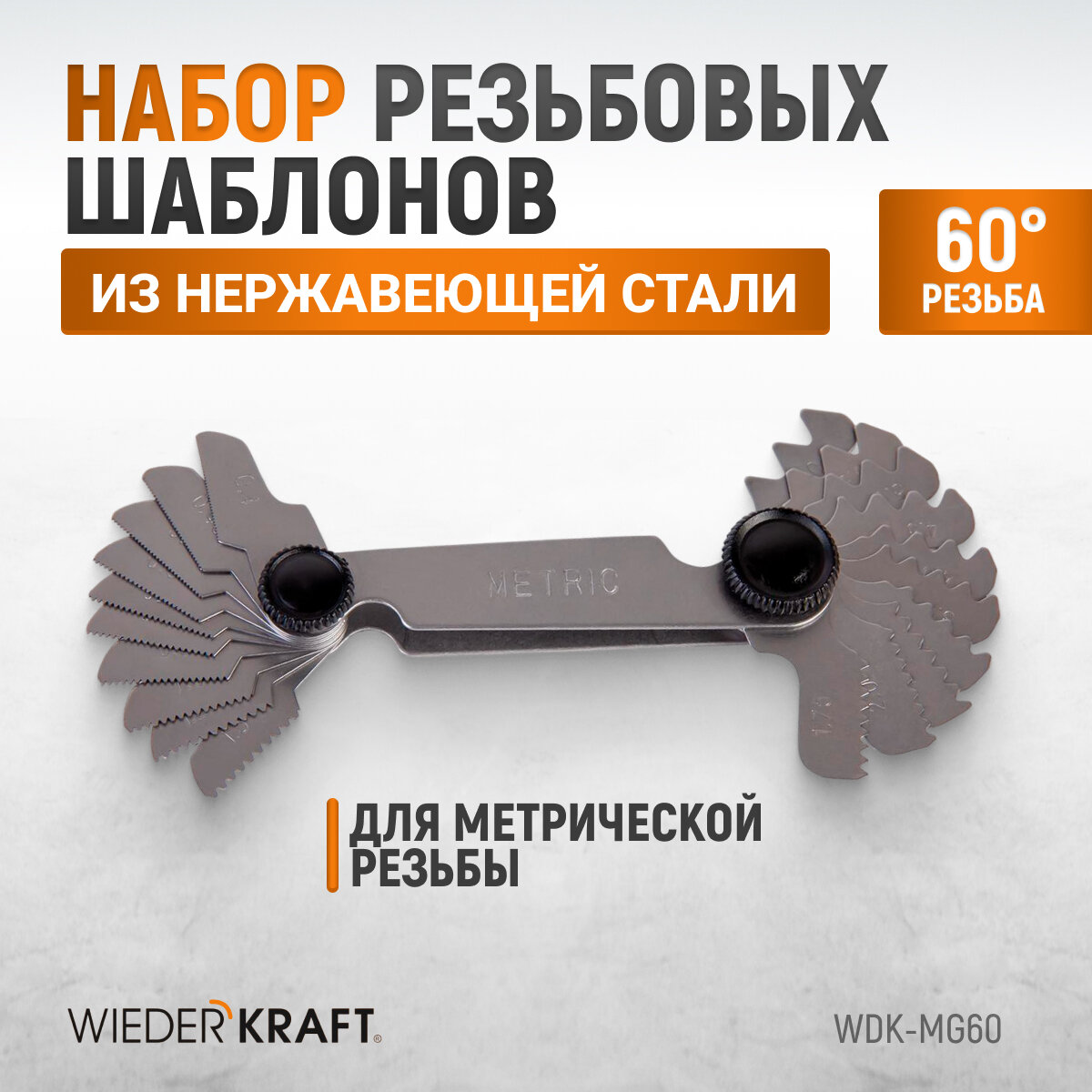 Купить Шаблон резьбовой резьбомер, шагомер WIEDERKRAFT 60 град WDK-MG60