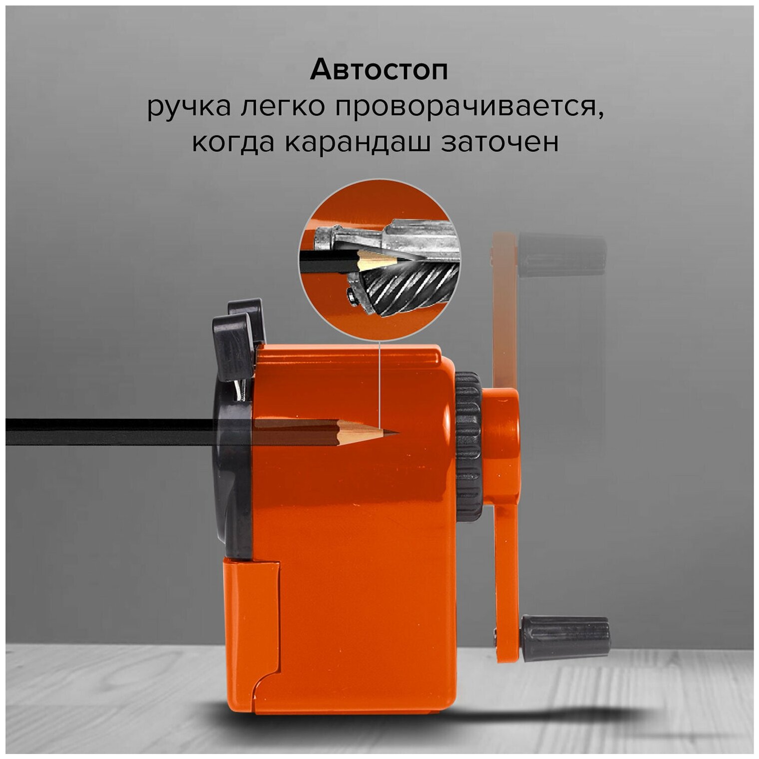 Точилка механическая настольная для карандашей с контейнером для стружки Brauberg Jet, металлический механизм, корпус оранжевый, 229567