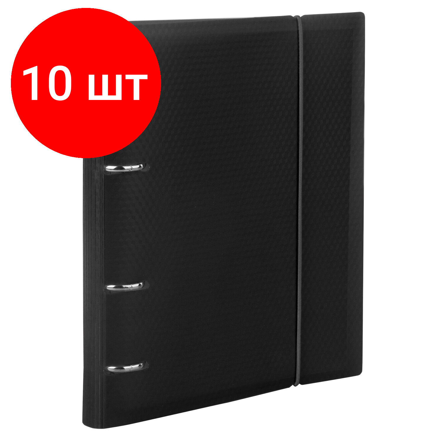 Комплект 10 шт, Тетрадь на кольцах А5 (175х220 мм), 120 л., пластиковая обложка, клетка, с фиксирующей резинкой, BRAUBERG, черная, 403568