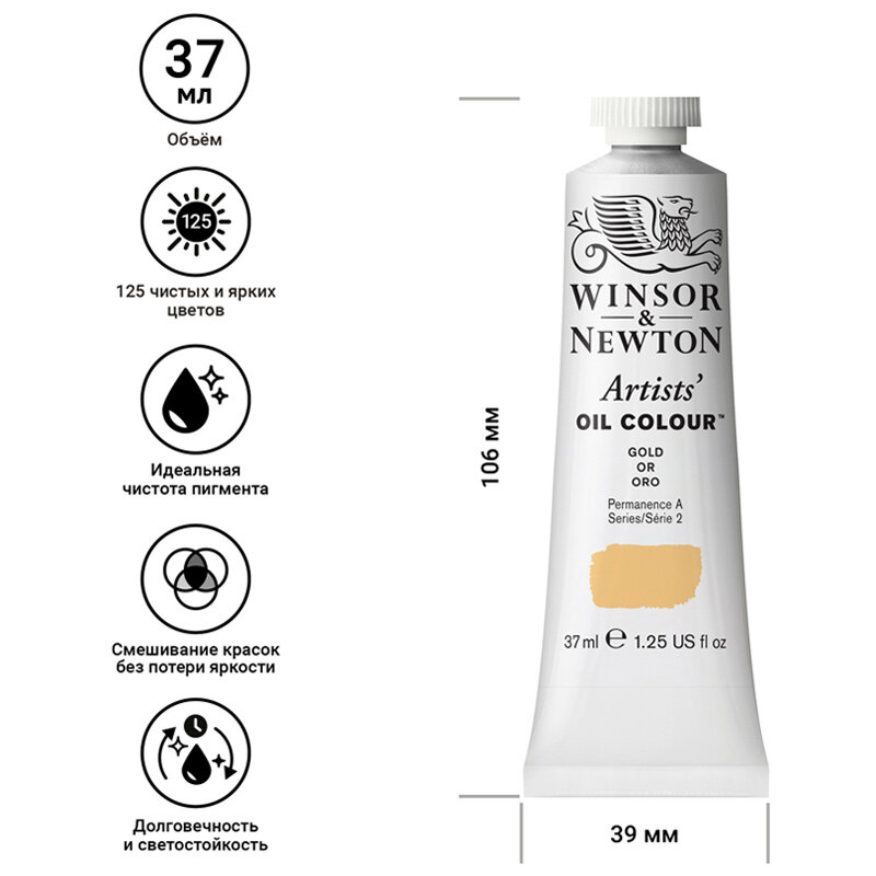 Краска масляная профессиональная Winsor&Newton Artists Oil, 37мл, золотой ( Артикул 316795 )