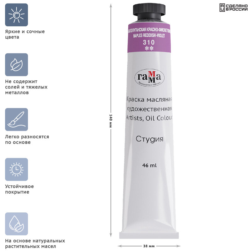 Краска масляная Гамма - Студия, №307 фиолетовая светлая, 46 мл, в тубе, 1 шт
