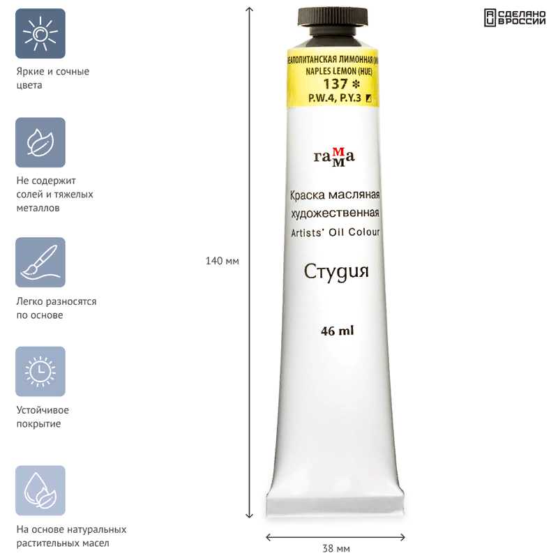 Купить 0.00.А046.137 Краска масляная художественная Гамма "Студия", 46мл, туба, неаполитанская лимонная (имит)