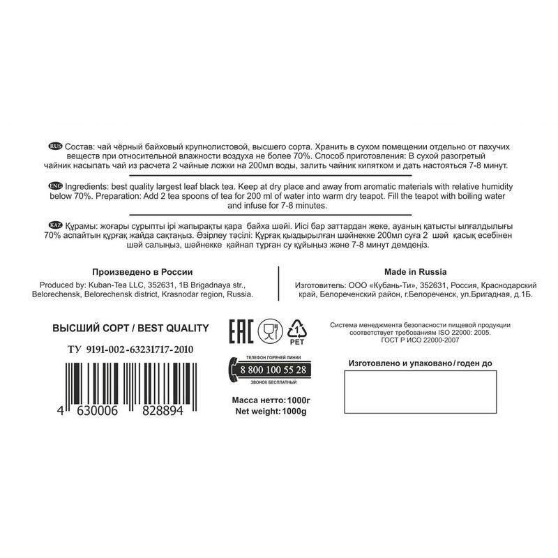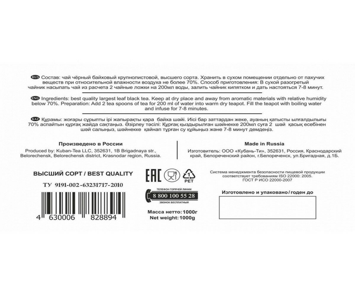 | Состав | чай черный байховый крупнолистовой |