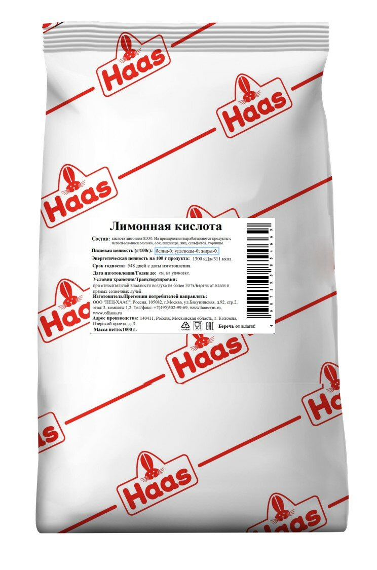 Haas Лимонная кислота 1 кг, пакет интересное: