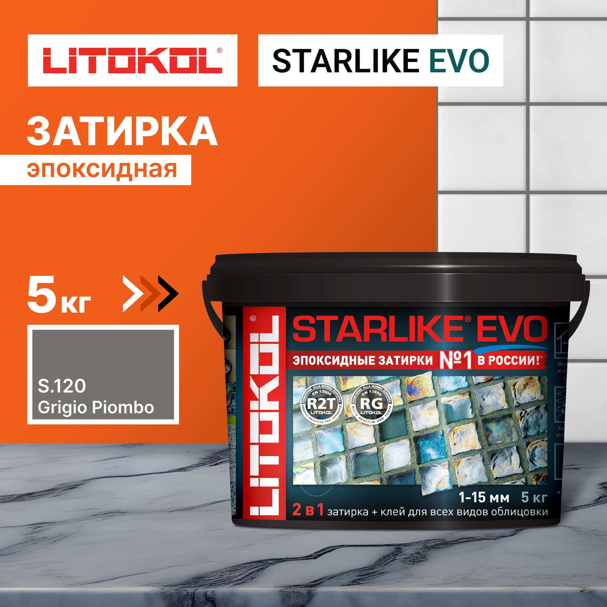 Купить Эпоксидная затирочная смесь LITOKOL STARLIKE EVO S.120 GRIGIO PIOMBO, 5 кг