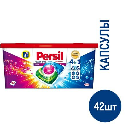 Капсулы для стирки Persil Power Caps Color 4в1, для цветного, 42 капсул