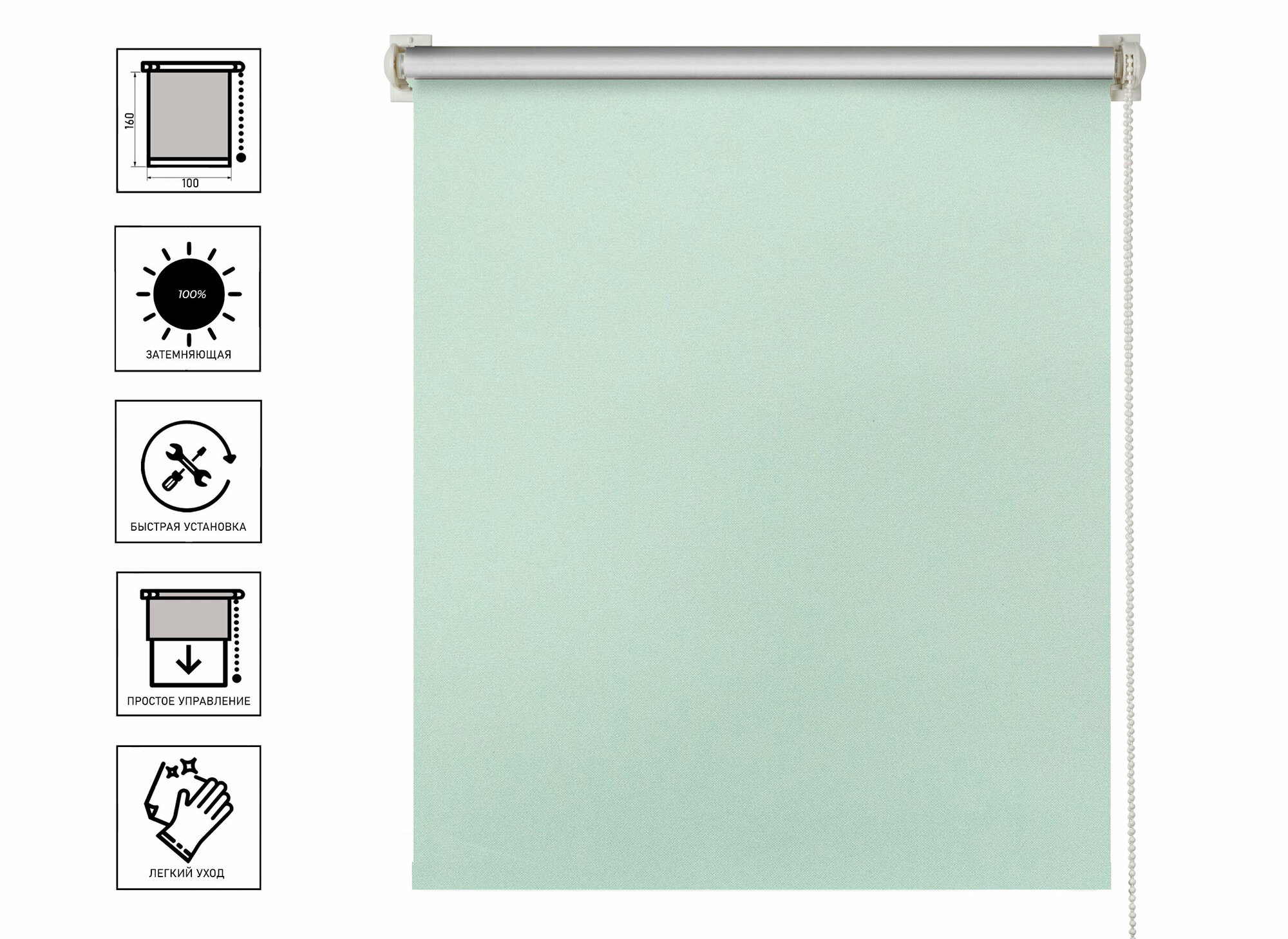СохранитьРулонные шторы блэкаут Плайн Свежая мята DECOFEST 100 см на 160 см, жалюзи на окна интересное:
