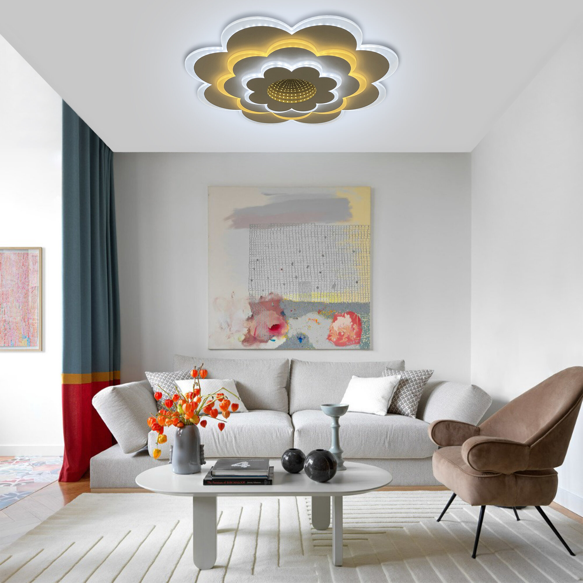 Люстра с пультом светодиодная потолочная 176W, 8 ламп, цветок, большая, белая, LEDCITY