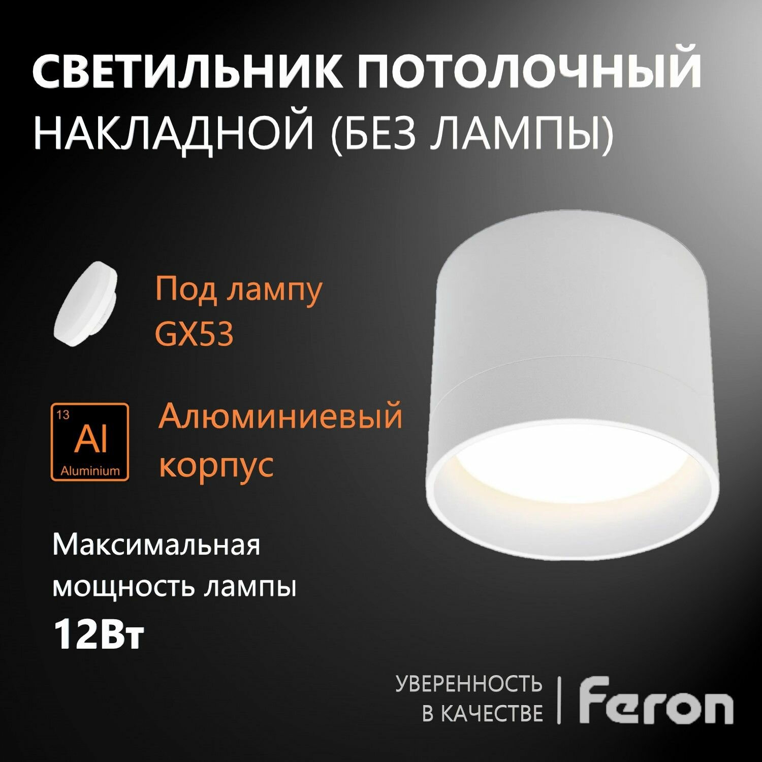 Светильник потолочный (спот) накладной белый под сменяемую лампу GX53, 12Вт, 230В, Feron HL353 (без лампы)