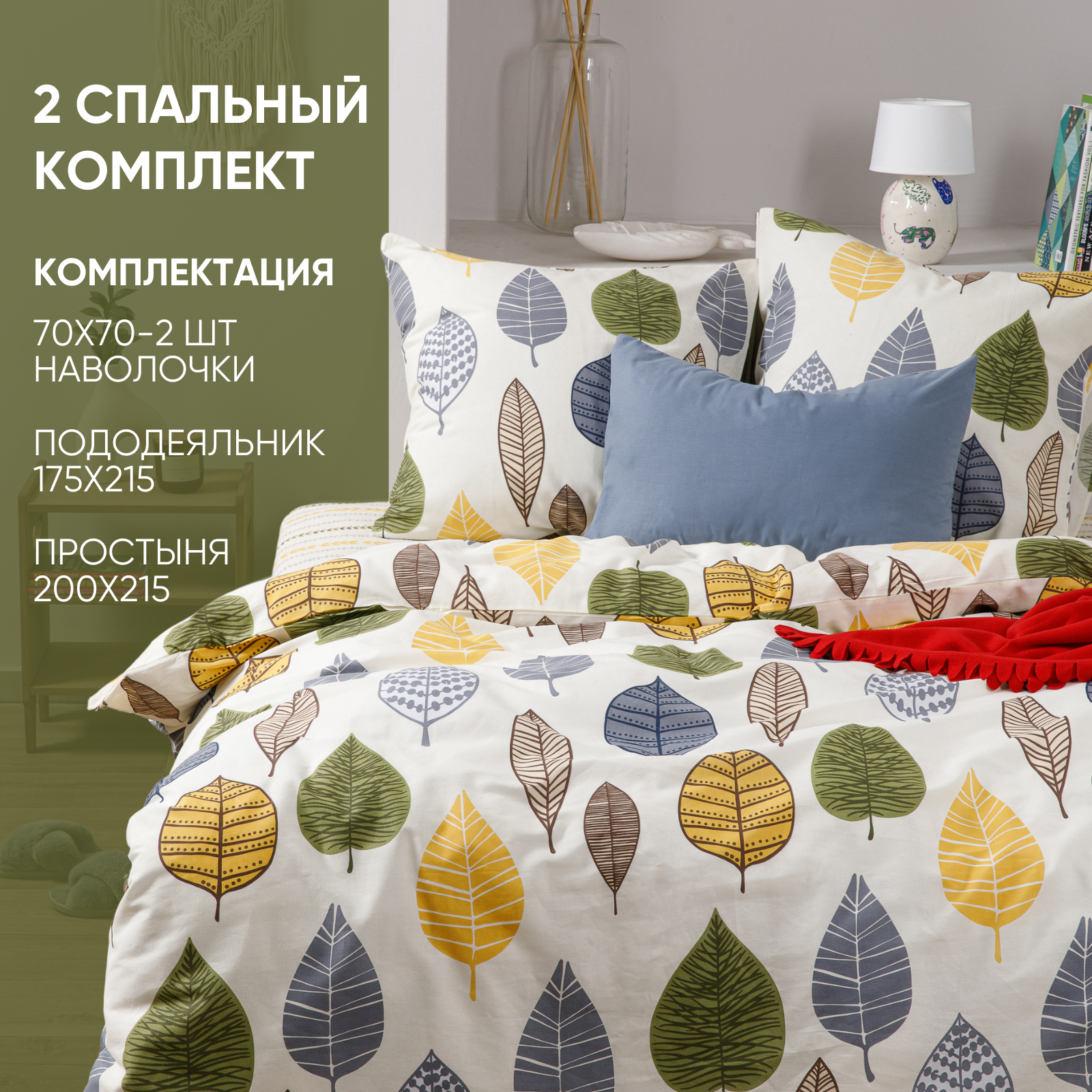 Постельное бельё 2сп Ночь Нежна Листопад 175х215 см, 180х220 см, 70х70 см 2шт, бязь, 120г/м², 100% хлопок