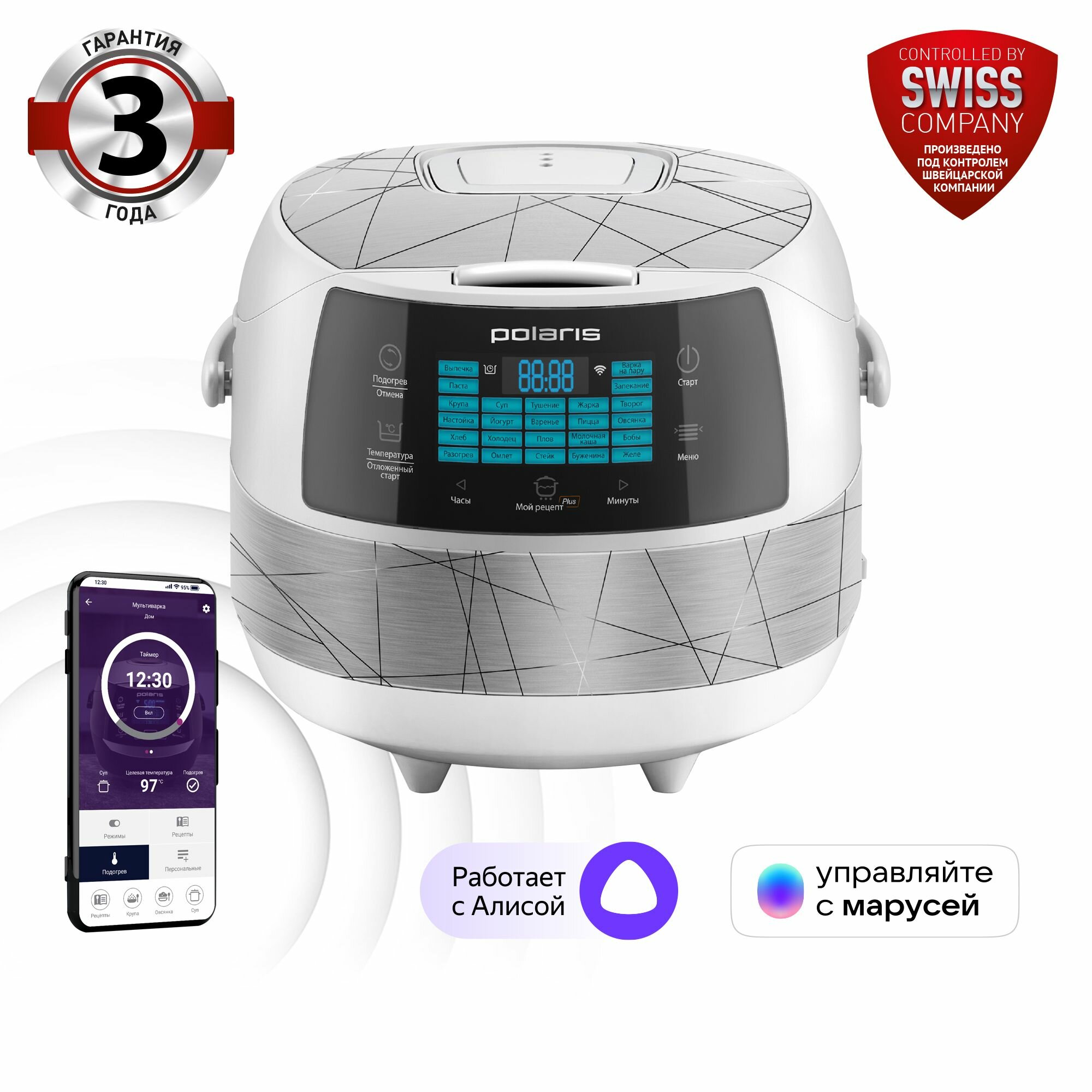 Быстро разогревается, простота в уходе, доступное мобильное приложение с рецептами |