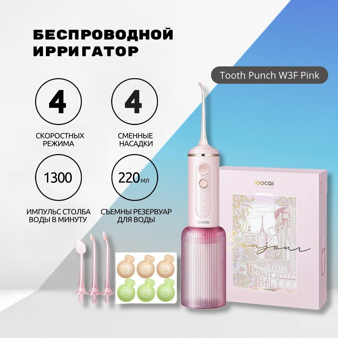 Soocas W3 PRO Ирригатор для полости рта (4 насадки) .