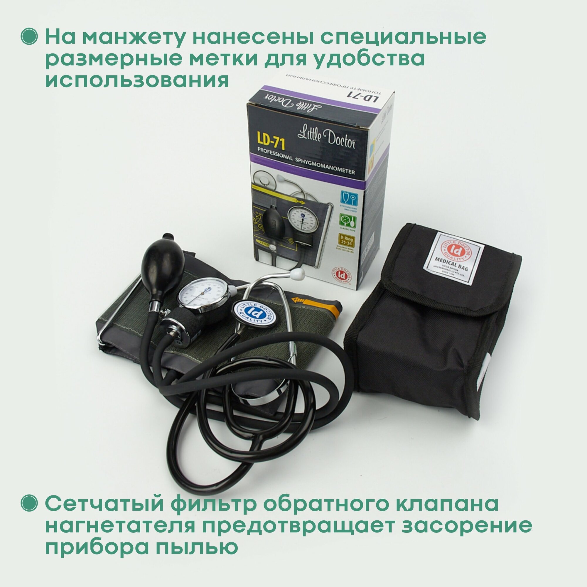 Тонометры механические Литтл Доктор Тонометр LD 71 механич (манжета на плечо стандарт 25-36см) (фонендоскоп в компл)