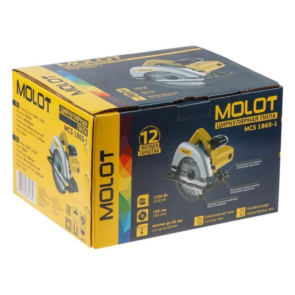Ниже Вы можете прочитать отзывы на Пила циркулярная дисковая MOLOT MCS 1865-1,1200 Вт, 185х30 мм, до 65 мм, ознакомится с подробными характеристиками, посмотреть интересные обзоры и фотографии на Пила циркулярная дисковая MOLOT MCS 1865-1,1200 Вт, 185х30 мм, до 65 мм.