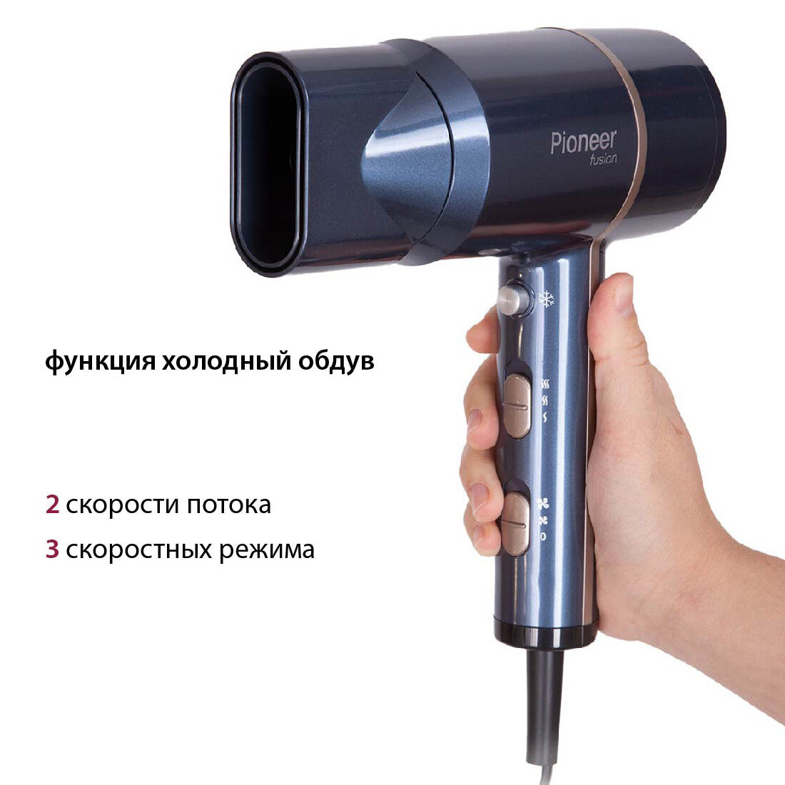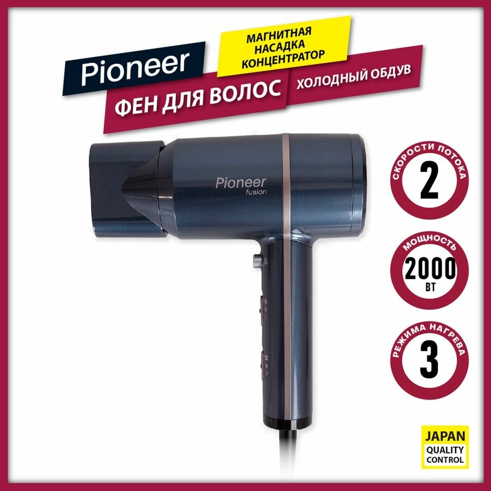 Фен для волос Pioneer HD-1800 с магнитной насадкой-концентратором, 2 скорости, 3 температурных режима, 2000 Вт
