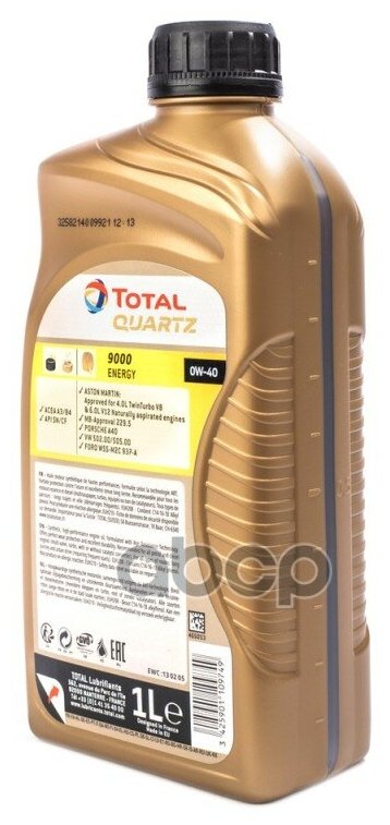 TOTALENERGIES 213989 Масло моторное синтетическое 5 л. TOTAL QUARTZ 9000 ENERGY 0W-40, ACEA A3, B4, API SN, CF, VW 505 00, VW 502 00, Porsche A40, MB 229.5, WSS-M2C937-A 1шт
